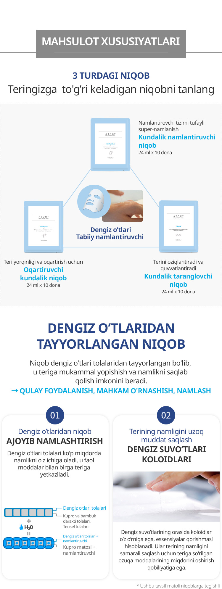 Atomy Kunlik yuzni namlantiruvchi niqobi