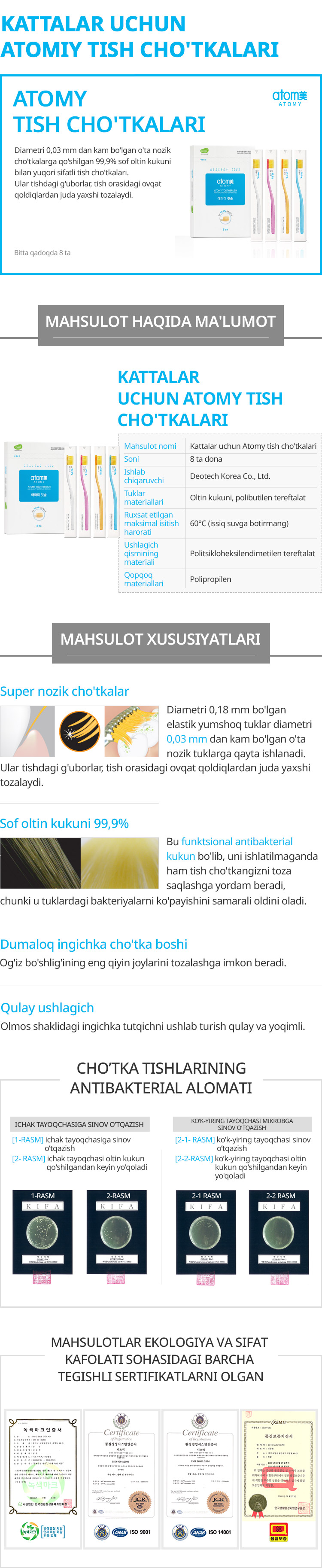 Atomy tish chotkalari 8 dona
