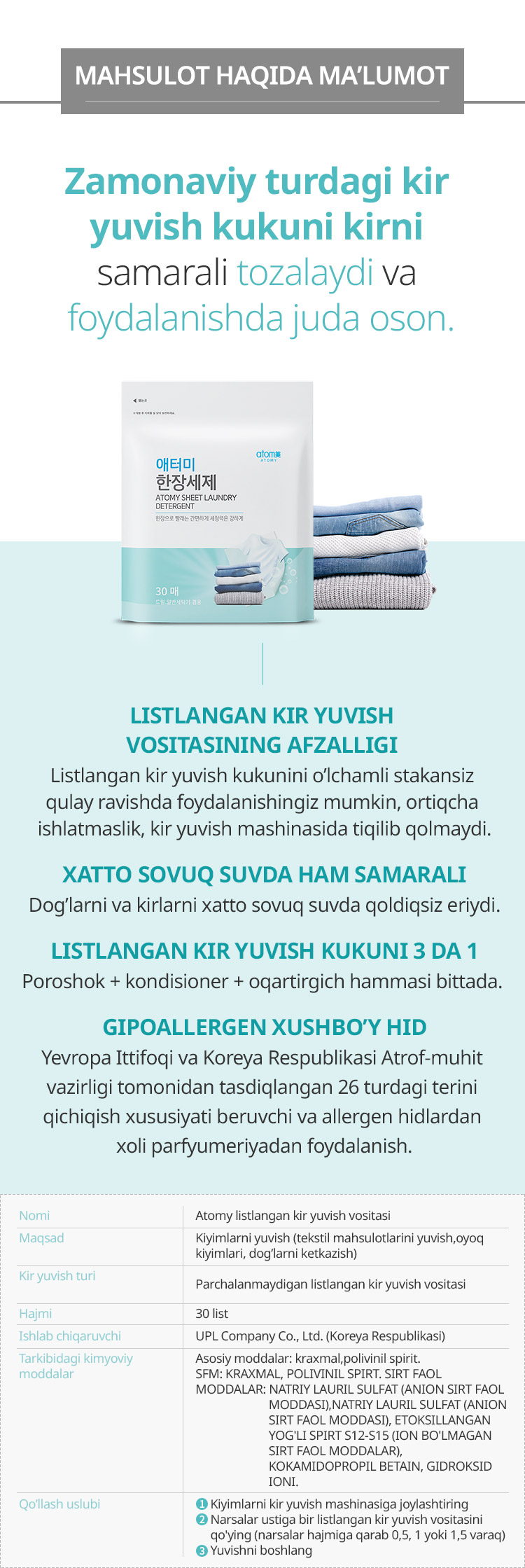 Atomy Listli kir yuvish vositasi