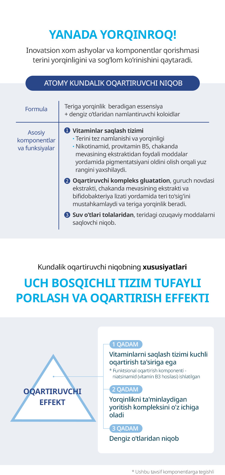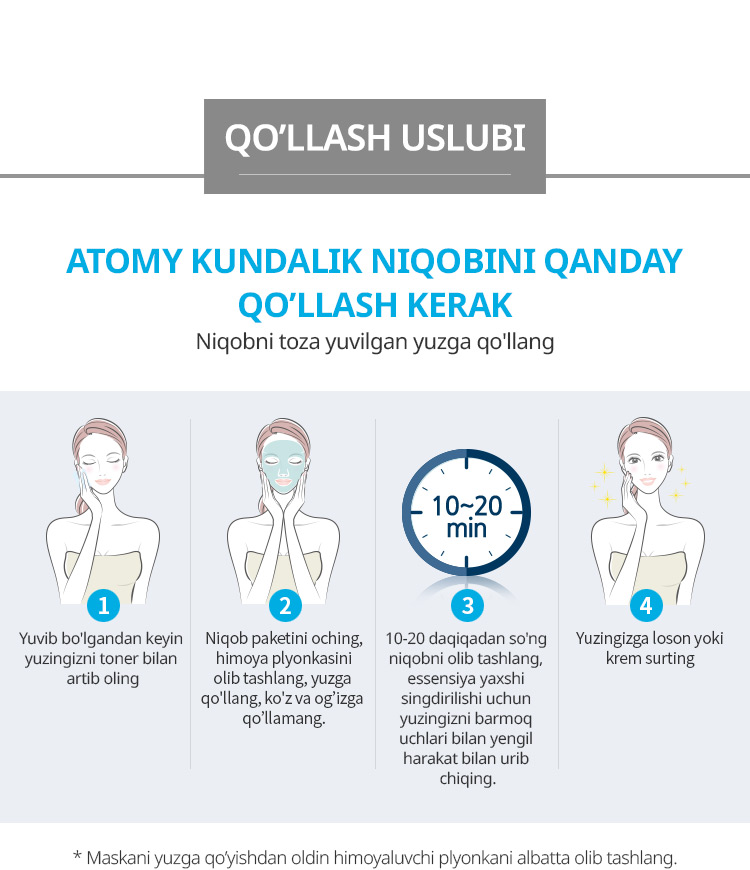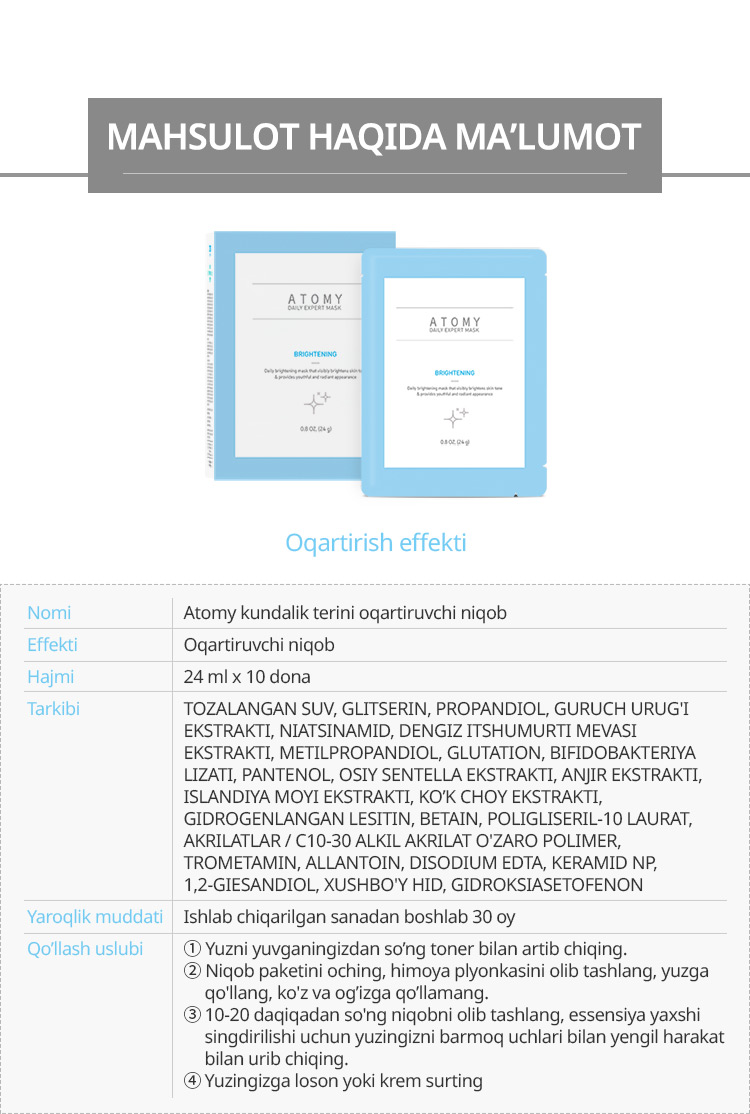 Atomy Kunlik yuzni yorqinlantiruvchi niqobi