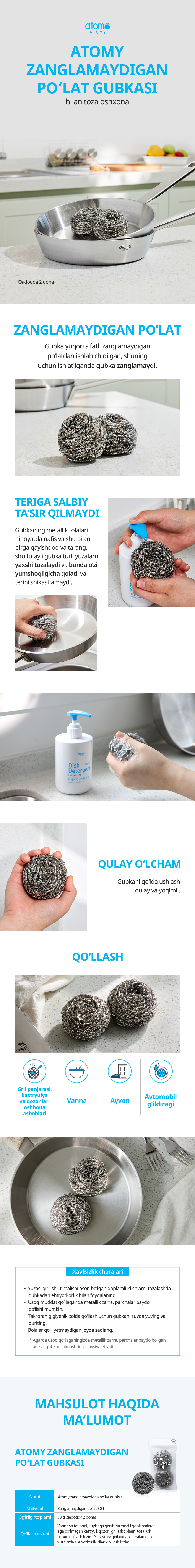 Atomy Zanglamaydigan Po‘lat Gubkasi